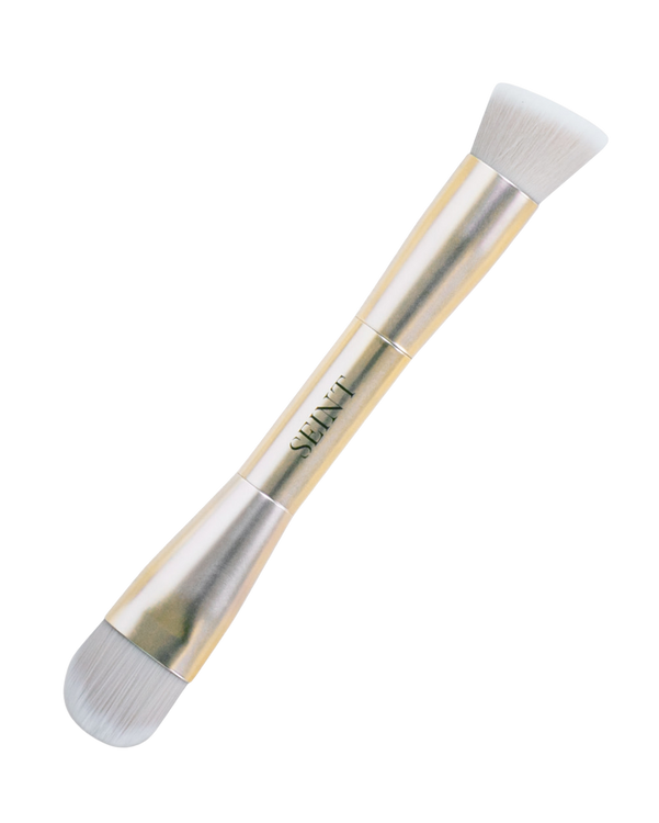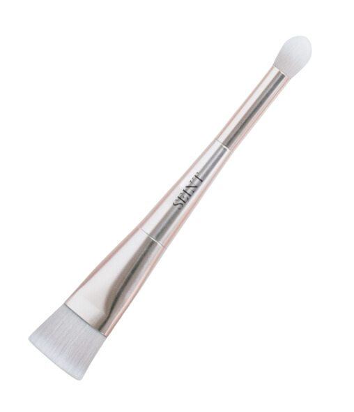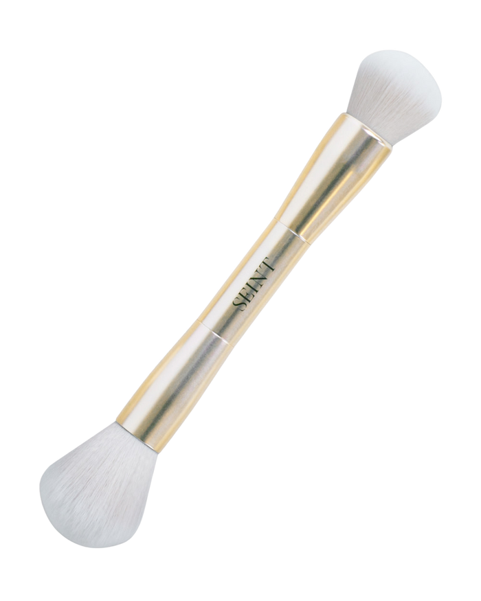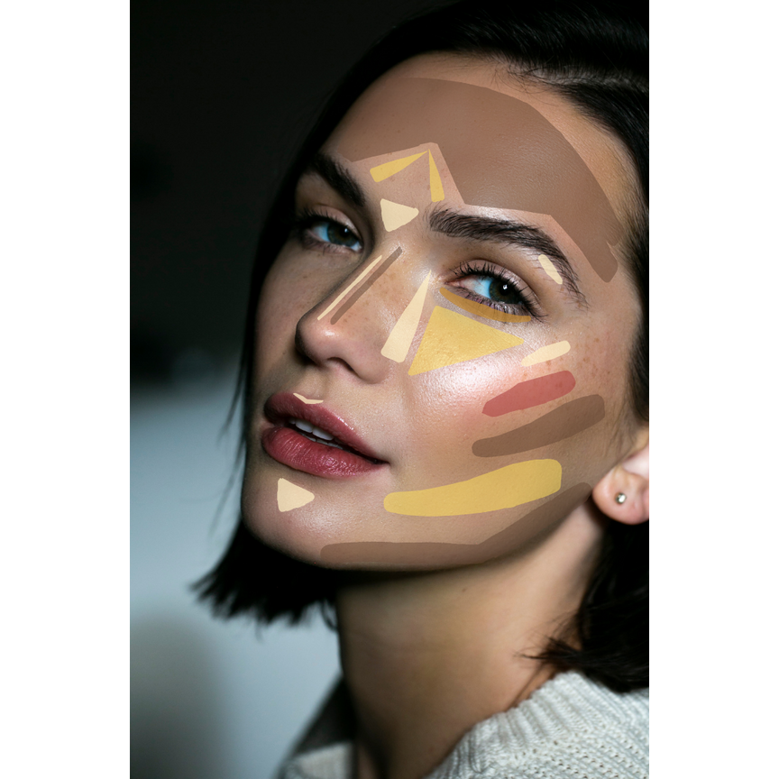 Apply with the large end of the Detail Brush under your cheekbones, in a small line down the sides of your nose, and around the perimeter of your forehead & jawline